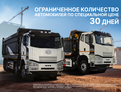 Информацию об автомобилях и условиях акции уточняйте у официальных дилеров FAW TRUCKS. Количество автомобилей ограничено.
